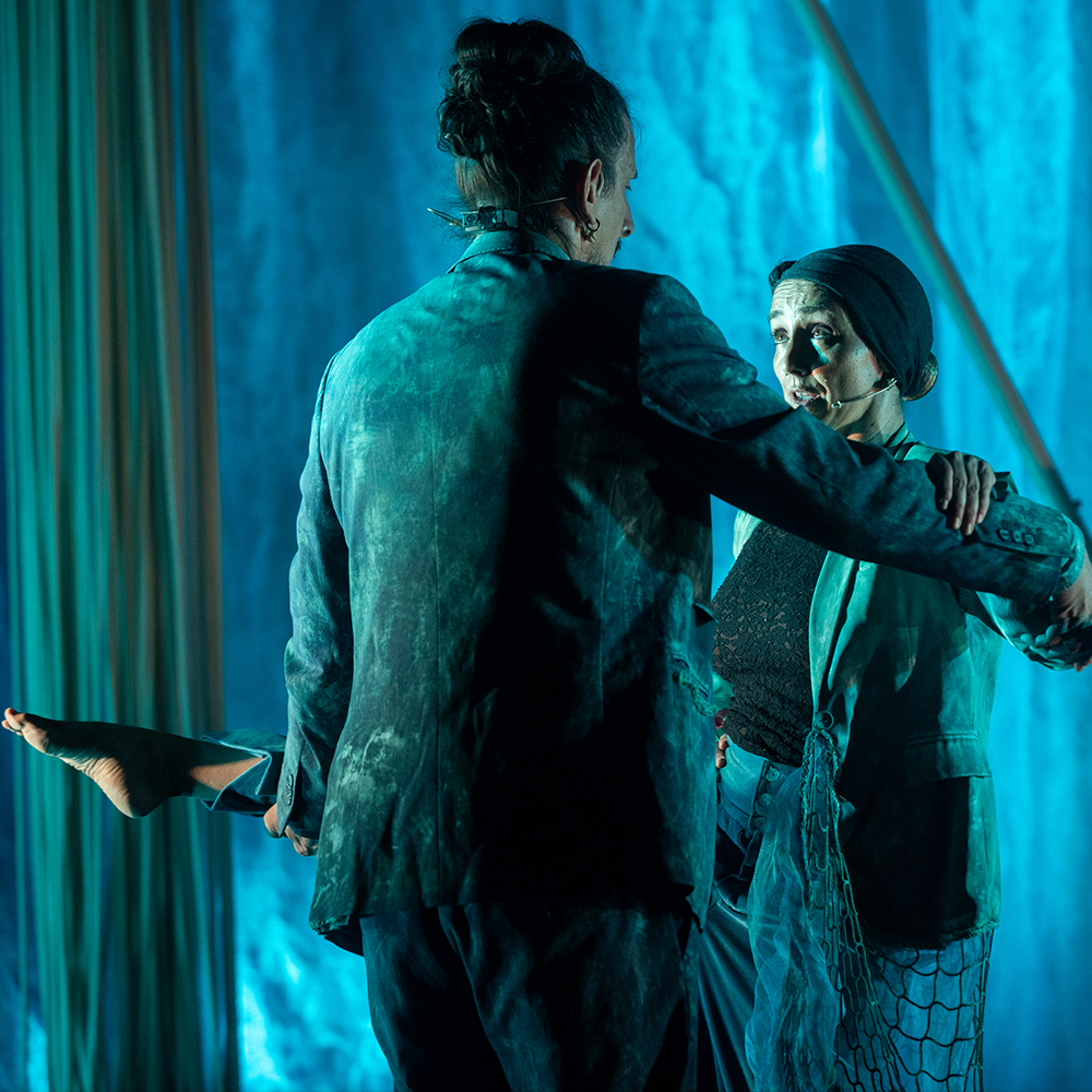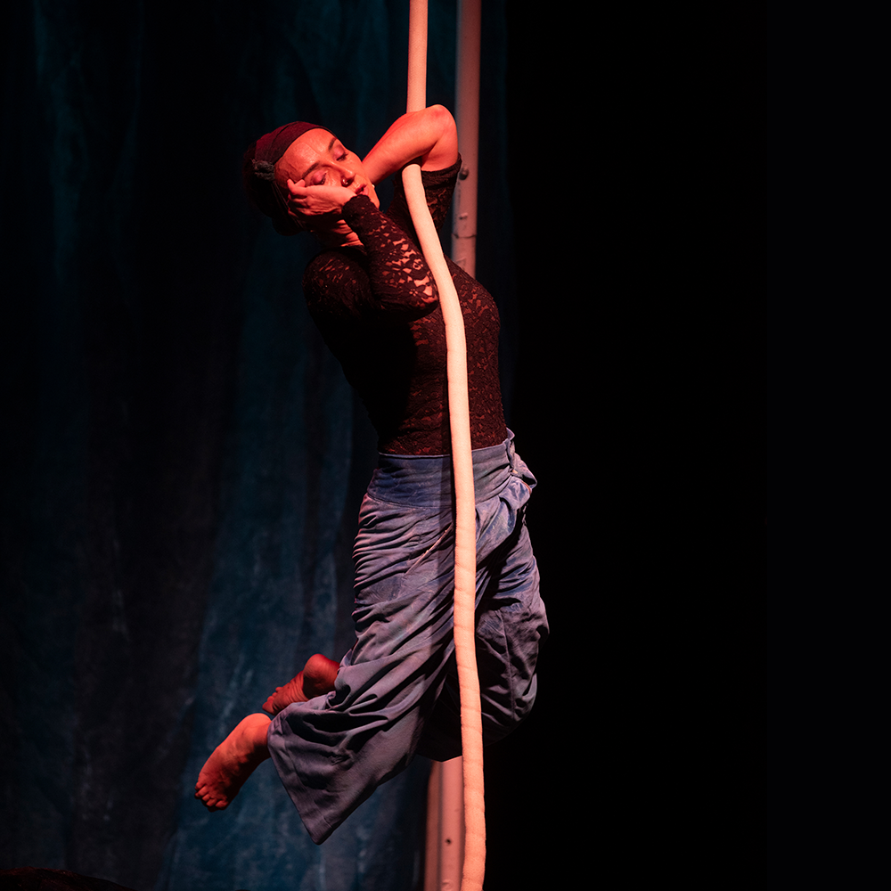 “La Orilla” es una casi tragicomedia. Un espectáculo honesto que se sumerge en un mar de cuerdas como quien navega por los recuerdos y que se enfrenta a emociones en calma chicha y en fuerte marejada. ¿Cómo sobrevivir al hueco que dejan los que ya no están? No sabemos cómo, solo que la vida pasa: a veces por soleá, otras por bulería. En esta pieza se diluyen los conceptos del teatro físico, el circo, la música en directo y la plástica escénica en un ritual casi humorístico, casi poético, casi flamenco y casi dramático.